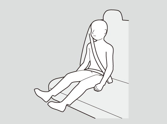 やむをえず、助手席にお子さまを乗せる場合は、できるだけシートを後方に下げ、必要ならばジュニアシートを使用し、適切にシートベルトを着用してすわらせてください。