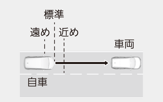 遠めは標準に対して遠くで警告します。近めは標準に対して近くで警告します。