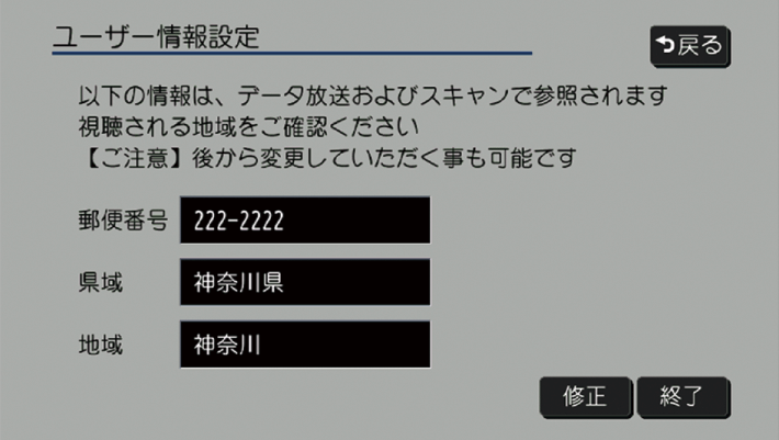 郵便番号:視聴する地域の郵便番号を修正します。