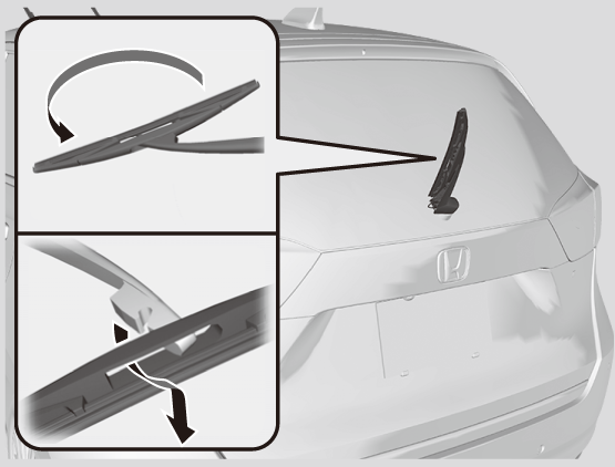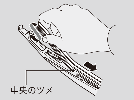 - ワイパーブレードの底部を回転させ、アームのホルダー部からブレードを引き抜いて取り外す。