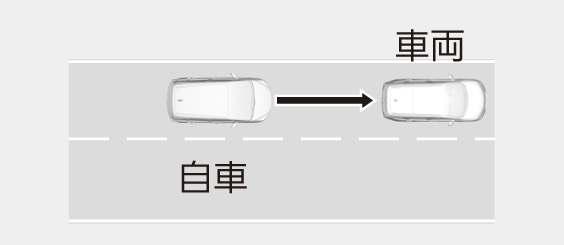 - 前方の車両、対向車両、歩行者および移動する自転車と自車との速度差が大きいとき