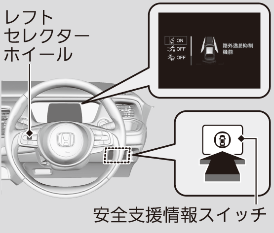 歩行者事故低減ステアリングは、路外逸脱抑制機能がONのときに作動します。