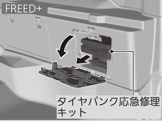 FREED共通- タイヤパンク応急修理キットを取り出す。