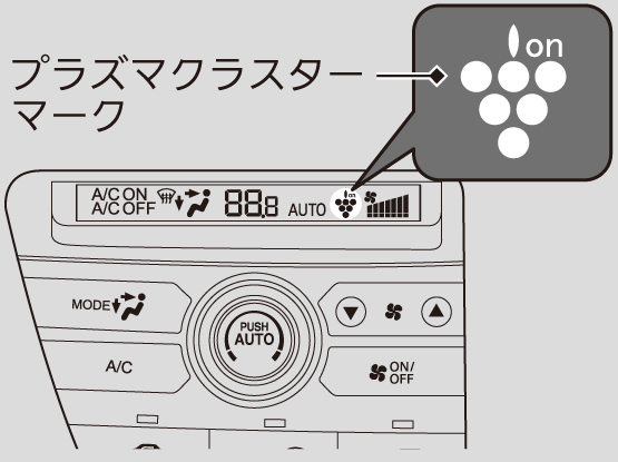 - エアコンもしくは送風に連動してプラズマクラスターも作動し、マークが点灯します。