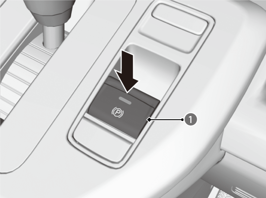 右足でブレーキペダルをしっかりと踏んだ状態で、パーキングブレーキスイッチ(