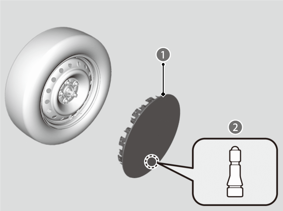 ホイールカバーを取り付けるときは、ホイールにあるタイヤバルブの位置にホイールカバーのバルブマークを合わせてから取り付けてください。