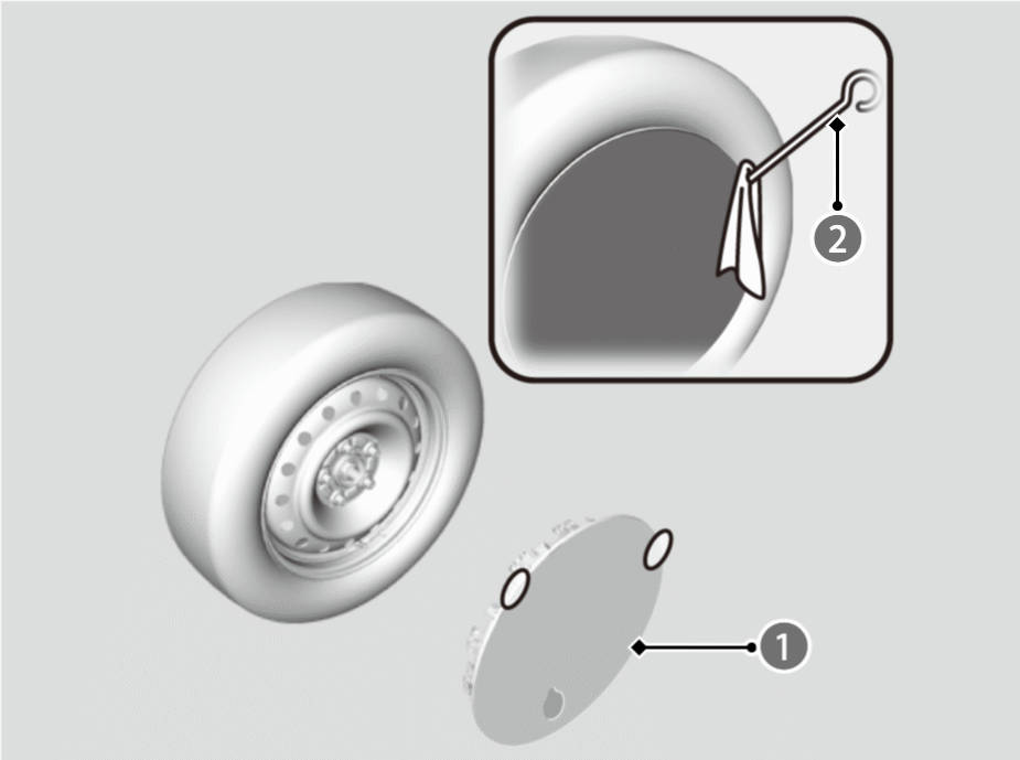 - ホイールカバーが傷付かないよう、ジャッキハンドルバーまたは先端が平らな固い金属の棒に布などを巻き付けてください。