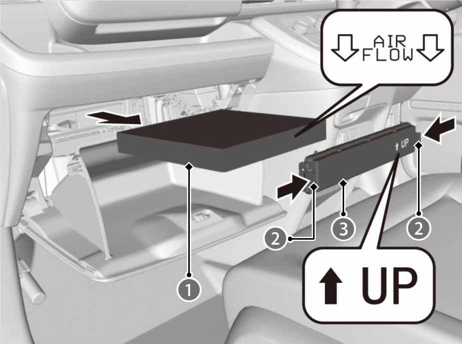 エアクリーンフィルターは、通常1年または15,000 kmごとに交換してください。 また、エアコンの風量が著しく減少したり、ガラスが曇りやすくなったと感じる場合は、フィルターを交換してください。
