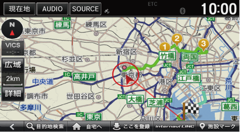 目的地に着くまでに経由したい場所を、ルート上に5つまで追加できます。