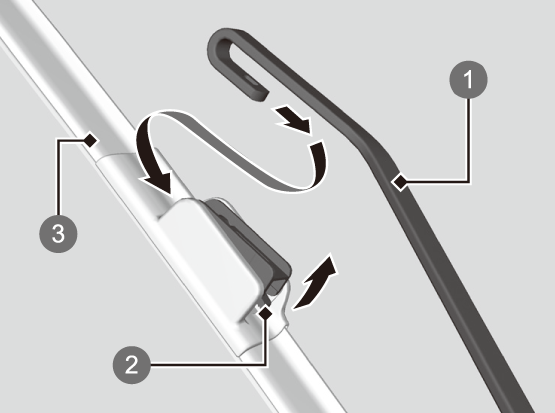 - ブレードをワイパーアームに取り付け、ラバーの突起部がブレード先端の溝に挿入されるまで差し込み、確実に固定します。