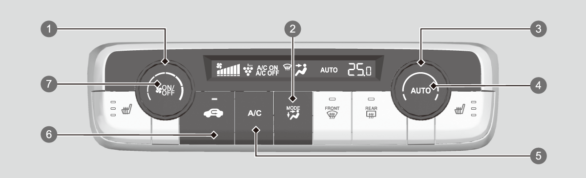 AUTOで使用中、自動で除湿暖房となります。AUTOではないとき、暖房中にA/Cを押してA/CON にすると除湿暖房となります。