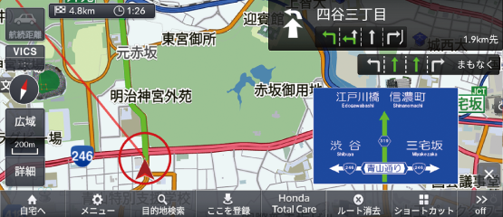 状況によっては、案内されない場合や案内の内容が実際と異なる場合があります。進路を確認して安全に走行してください。