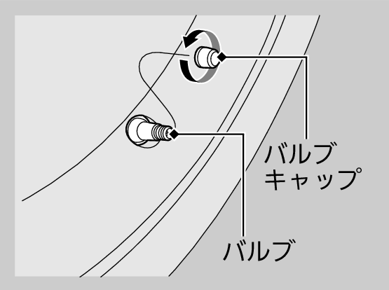 1. タイヤバルブからボトルホースを外しバルブキャップを取り付ける。