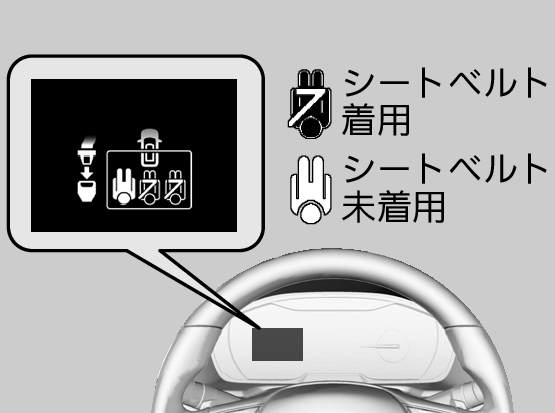 - 運転席または助手席のシートベルトを着用せずに走行した場合、停車するとブザーは止まります。また、走行している場合でも一定時間を超えるとブザーは止まります。