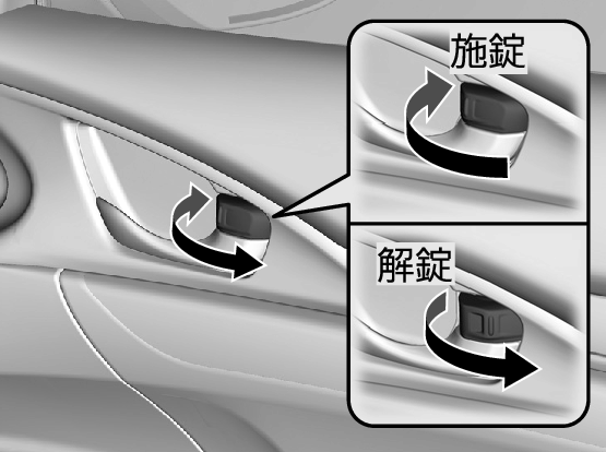 - 運転席ドアは、内側のハンドルを引くと施錠していてもドアが開きます。