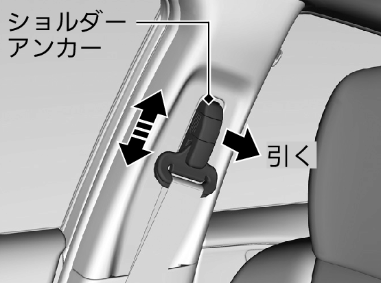 - フロントシートのシートベルトは、座高に合わせて、ショルダーアンカーの高さを調節してください。