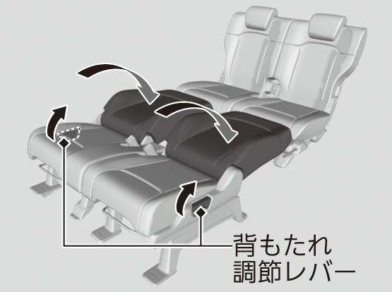 フロントシート(運転席、助手席)の背もたれを倒すと、リヤシートから足を伸ばして座れる状態にできます。