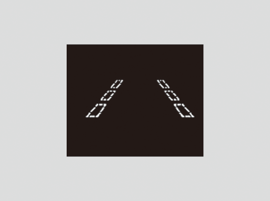 車が警報エリアに入ると車線逸脱の警報をブザーとディスプレイ表示で行います。