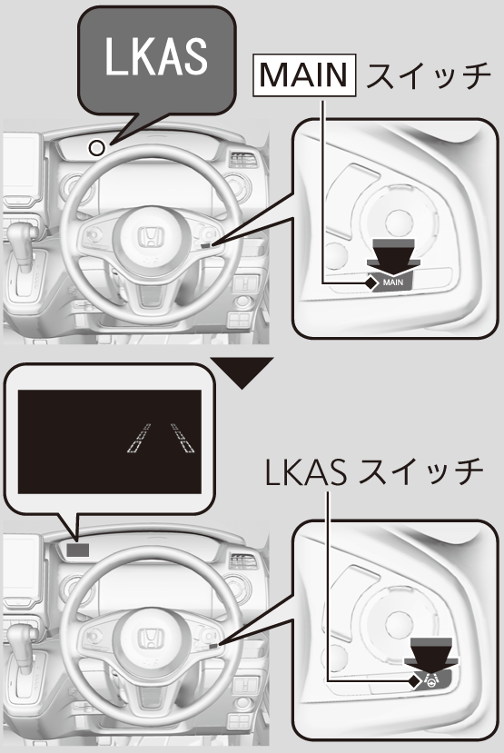 - LKASは補助システムとして使用してください。LKASは、自動運転システムではありません。あくまでも運転者をアシストするためのシステムです。