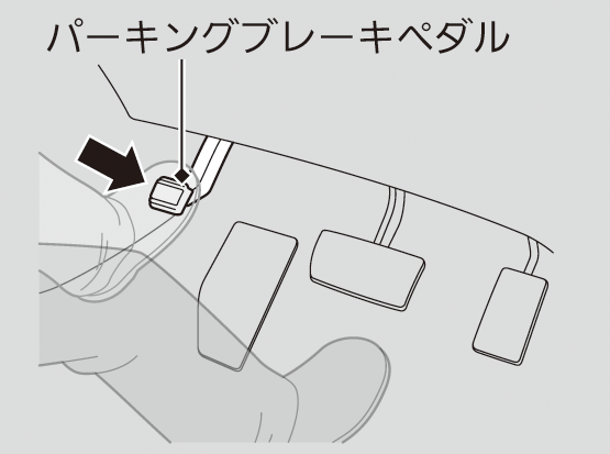 エンジンを始動するときは、ブレーキペダルをしっかりと踏む。