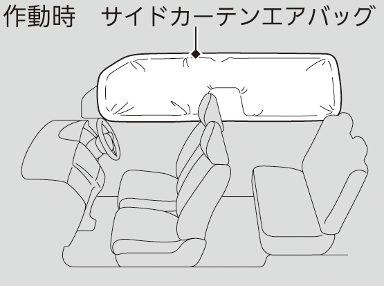 サイドカーテンエアバッグの作動条件は、サイドエアバッグと同じ条件です。