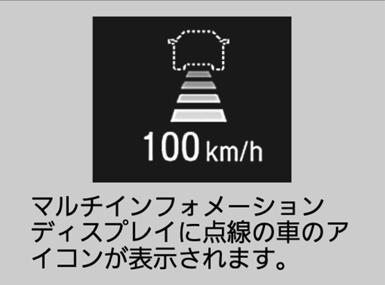 先行車または割り込み車の車速が自車よりも速く、次第に離れていく場合、先行車との距離が短くても警報が出ず、そのまま追従することがあります。マルチインフォメーションディスプレイを使って先行車検知音の有り/無しを設定できます。