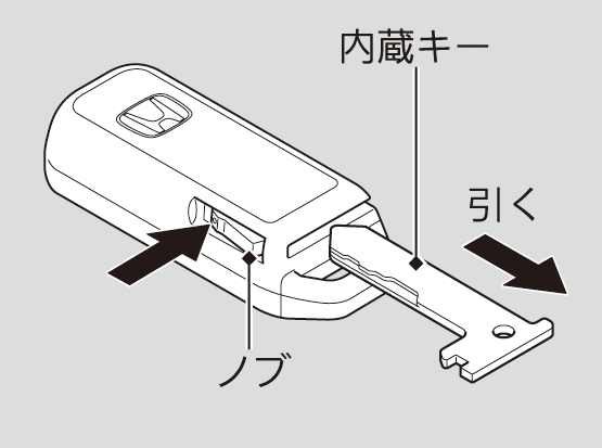 Hondaスマートキーの電池が切れたときや車のバッテリーがあがったときは、内蔵キーを使用してください。