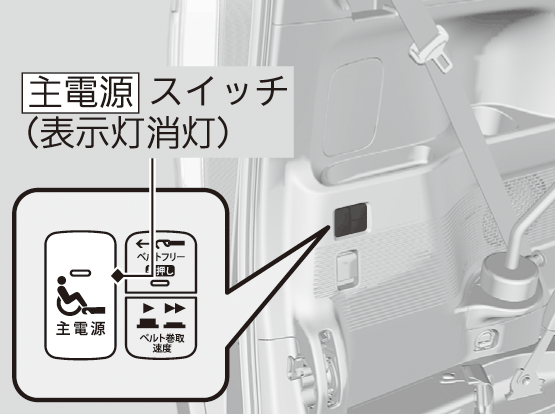 - 出スイッチを押してもベルトがゆるまない場合は、車いすを押しながら出スイッチを押してください。
