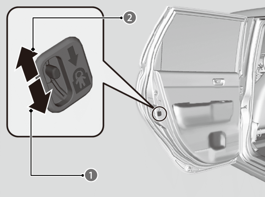 走行中などにお子さまが車外に放り出されることを防止するため、ノブの位置に関係なく、後席ドアを車内から開けることができないようにする機能です。