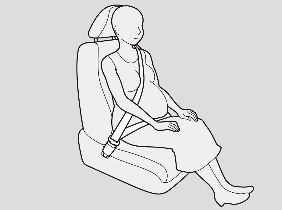 妊娠中のかたが運転または同乗するときは、ご自身と赤ちゃんを守るために、常に三点式シートベルトを着用してください。