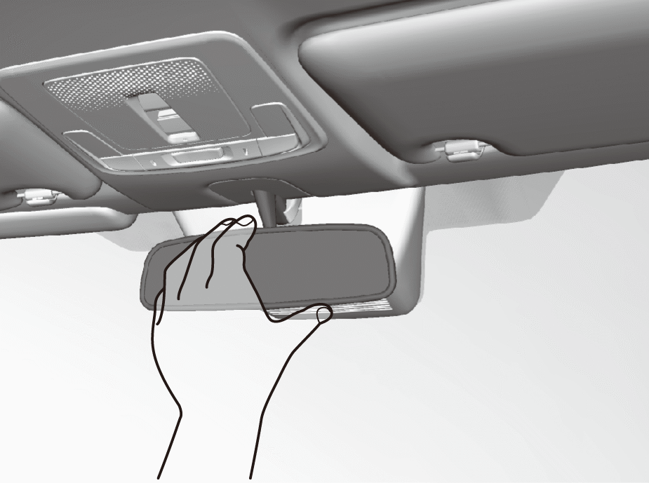 ルームミラーの角度は、正しい運転姿勢ですわった位置で走行前に調節してください。