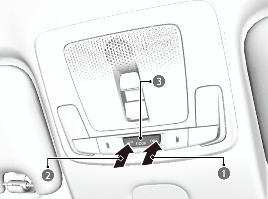 - 運転席ドアの解錠や車両のパワーモードをOFFにすると室内灯が点灯します。このときドアを開けなければ室内灯は30秒後に消灯します。