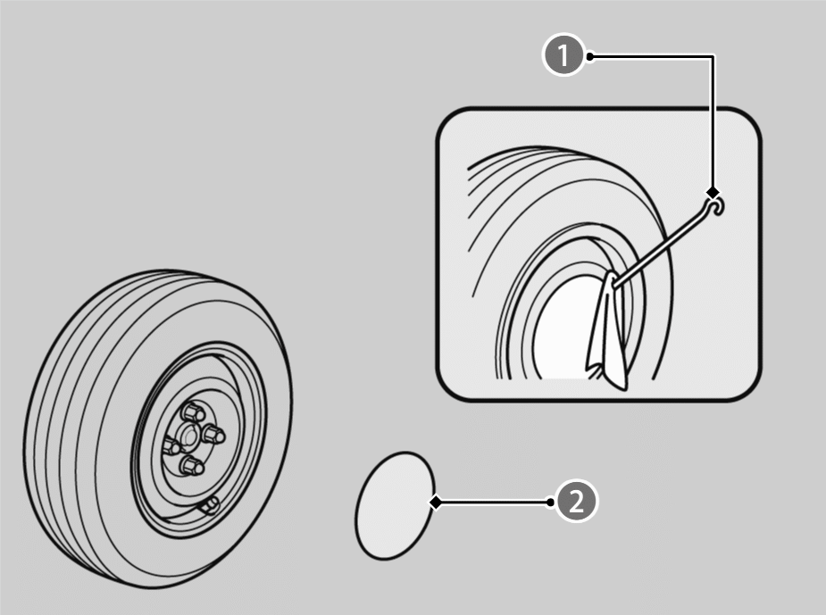 - ホイールカバーが傷付かないよう、ジャッキハンドルバーまたは先端が平らな固い金属の棒に布などを巻き付けてください。