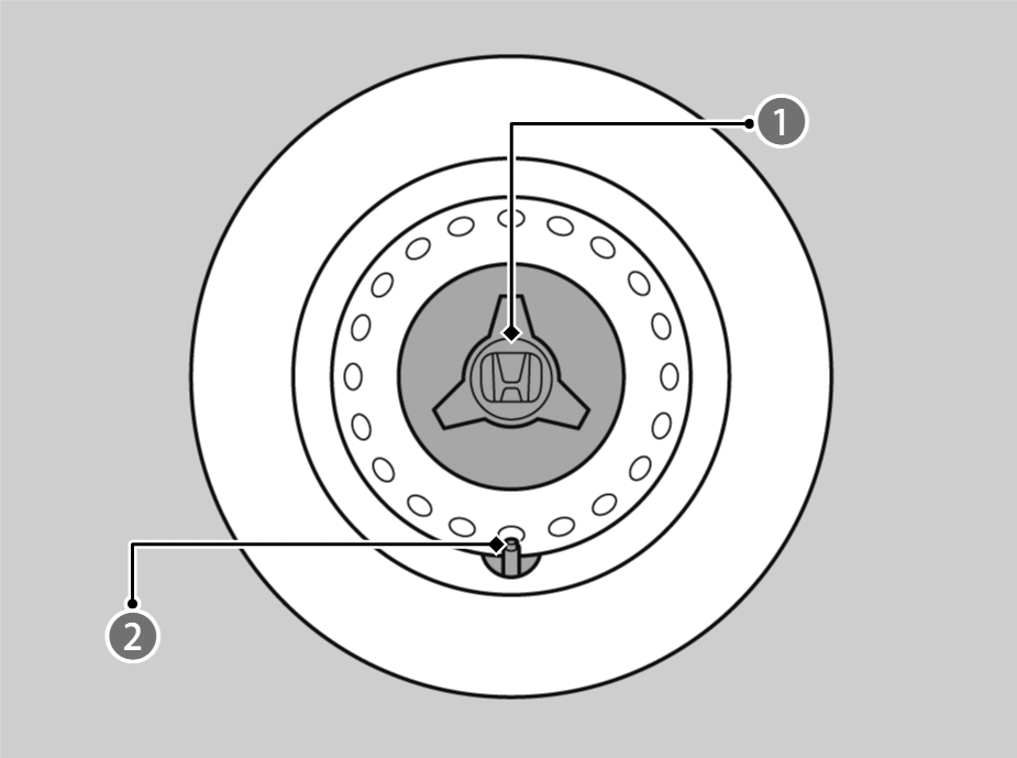 ホイールカバーのホンダマーク下にタイヤバルブがくるように組み付けると、位置決め部がホイールナットに収まる位置となります。