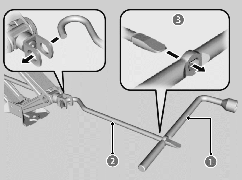 - ジャッキハンドルバーはジャッキハンドルに奥まで差し込んでください。(