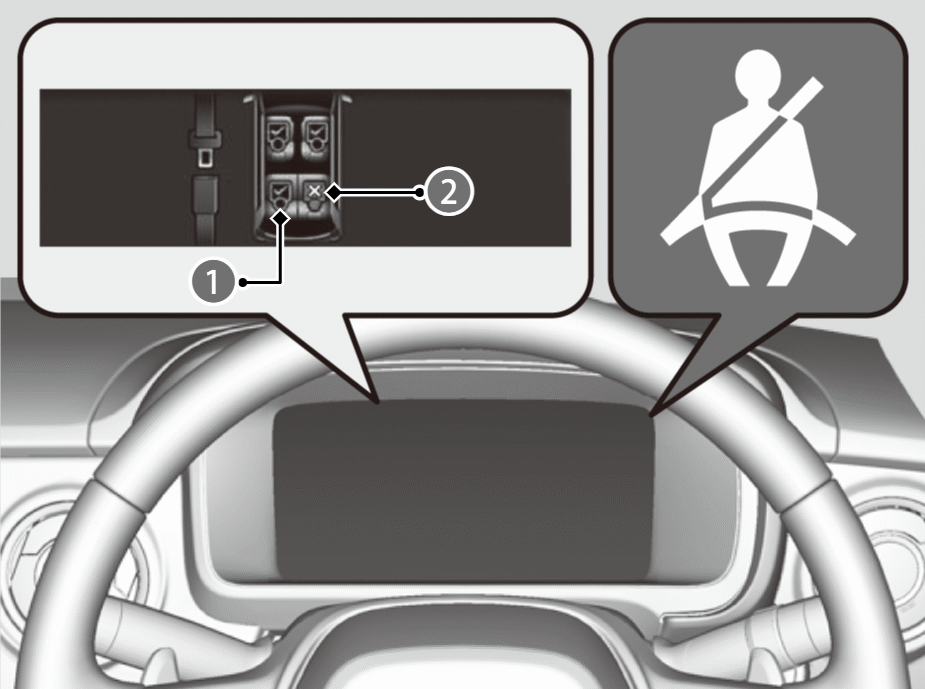 シートベルトリマインダーは乗員のシートベルトの未着用をお知らせします。シートベルトを着用すると警告は消えます。
