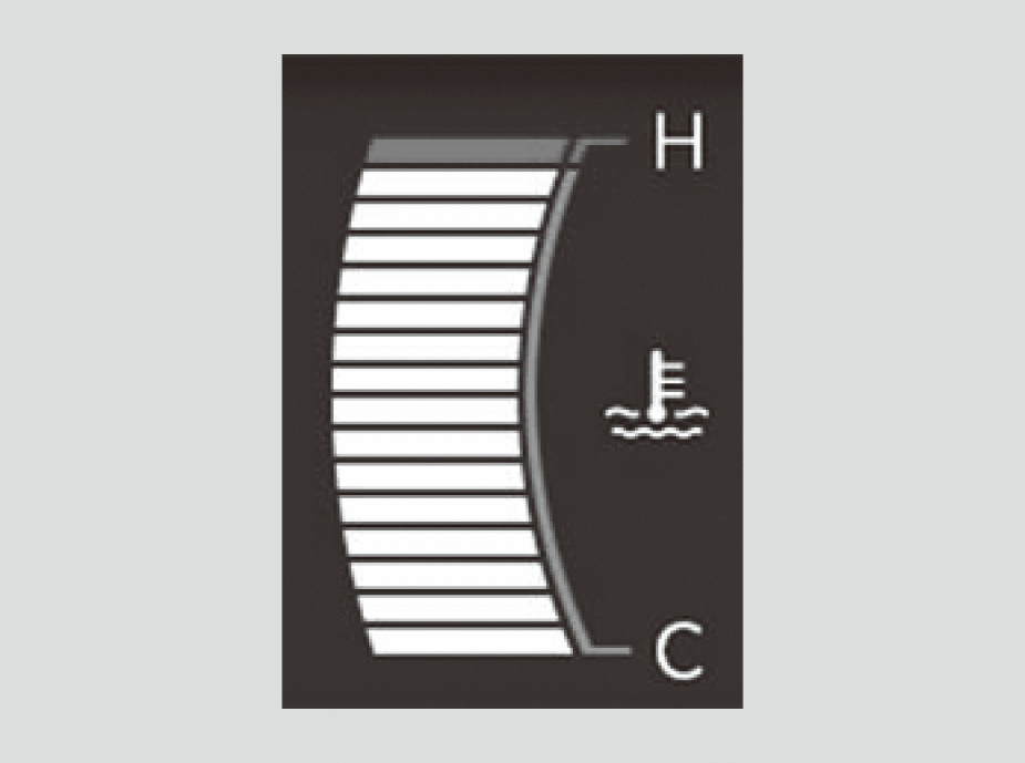エンジン冷却水の温度を表示します。通常はHのマークまで上がらない状態で走行します。
