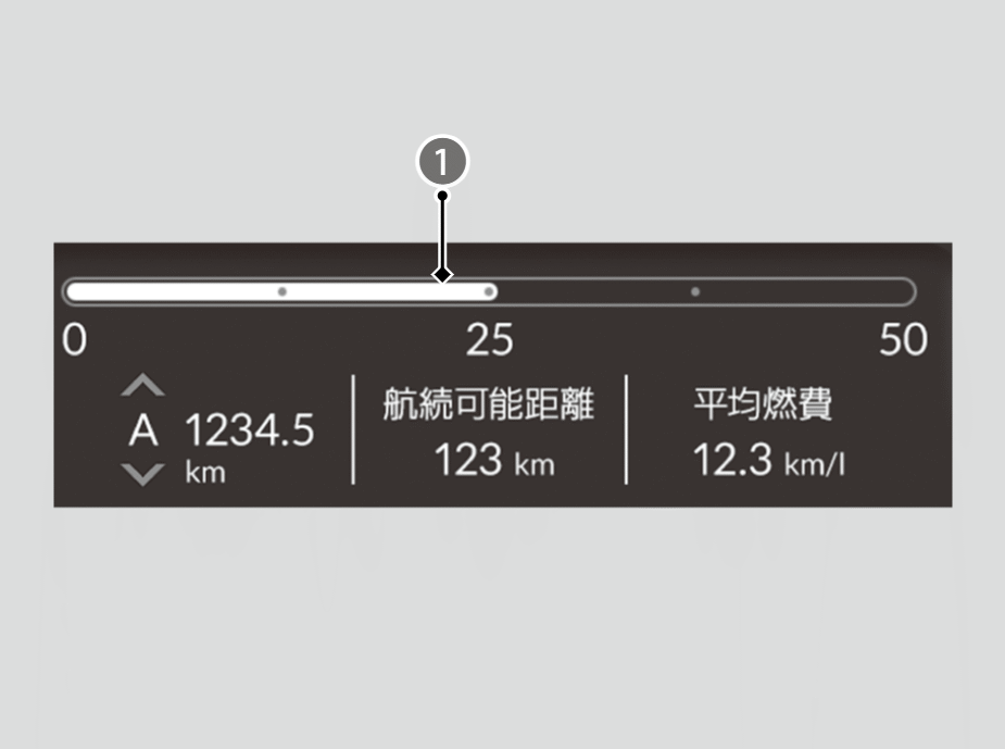 燃料残量と平均燃費をもとに推定航続可能距離を表示します。