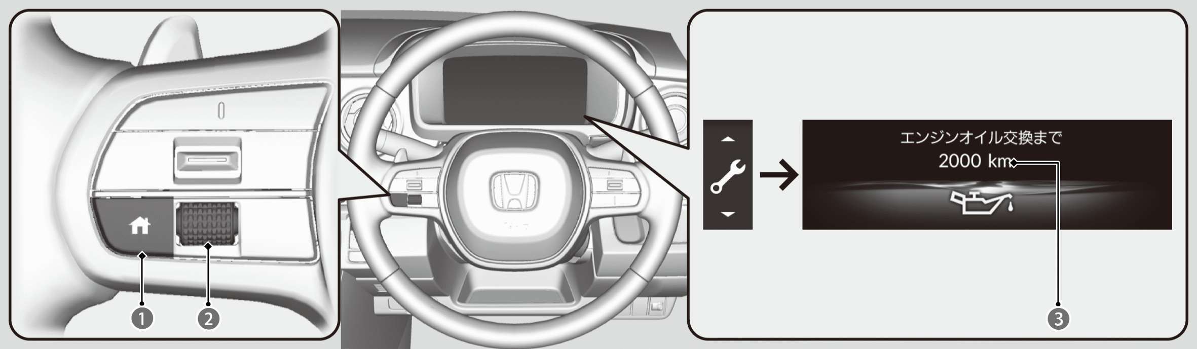 - マルチインフォメーションディスプレイにオイルメンテナンス画面が表示されます。