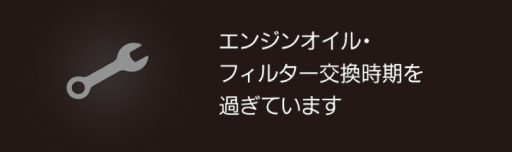 メンテナンス時期を過ぎています。メンテナンスを受けたら、オイルメンテナンスをリセットしてください。 |