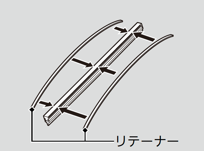 - リテーナーには反りがあります。リテーナーを図の向きでラバーに取り付けてください。