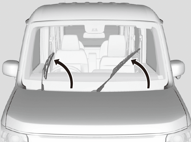 - 運転席側、助手席側の順にワイパーアームを起こす。