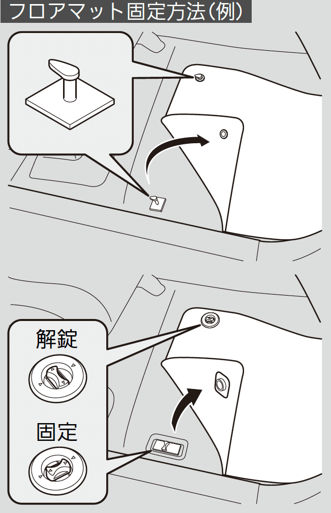 運転席のフロアマットが前方にずれるのを防止するため、フロアアンカーで確実に固定してください。