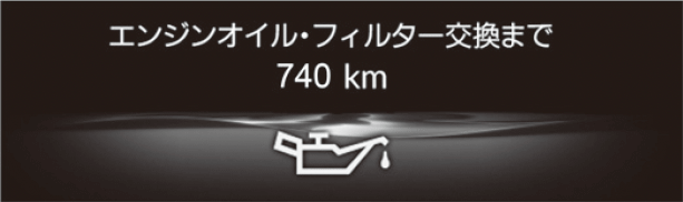 メンテナンス時期までの走行距離が750km 未満になったとき表示されます。