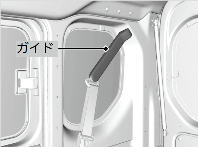 リヤシートのショルダーアンカー部のガイドを引っぱるなどして、シートベルト引き出し方向以外に強い力をかけないでください。ガイドが変形することがあります。