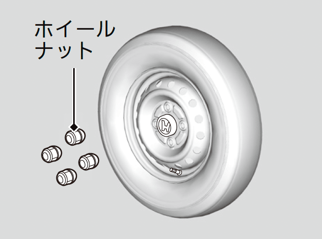 運転中にタイヤがパンクしたときは、ハンドルをしっかり握り徐々にブレーキをかけてスピードを落とし安全な場所に停車してください。その後、応急用スペアタイヤに交換します。パンクしたタイヤの点検や交換は、Honda 販売店に依頼してください。