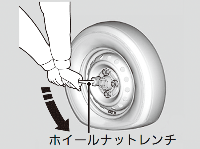 - ホイールナットをホイールナットレンチで約1回転ゆるめる。