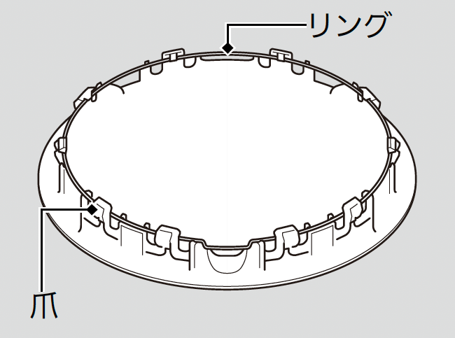ホイールカバー装備車ホイールカバーを取り付ける前に、裏面の爪がリングに正しく組み付いていることを確認してください。