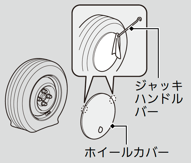 - ホイールカバーが傷付かないよう、ジャッキハンドルバーに布などを巻き付けてください。