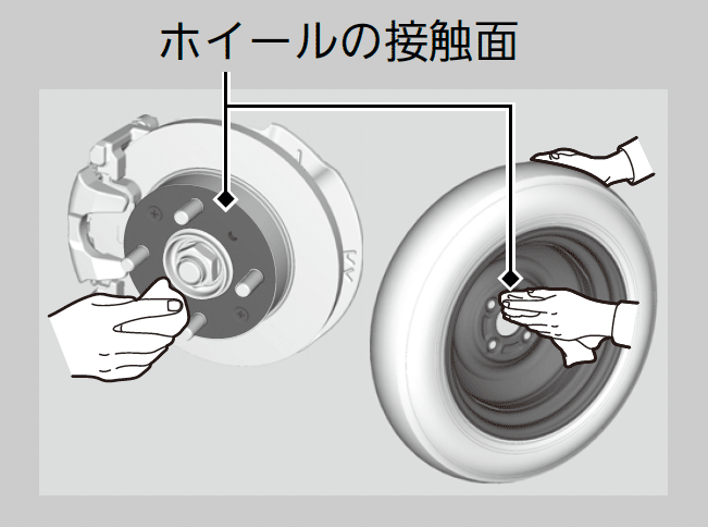 - ホイールの接触面を拭き取る。